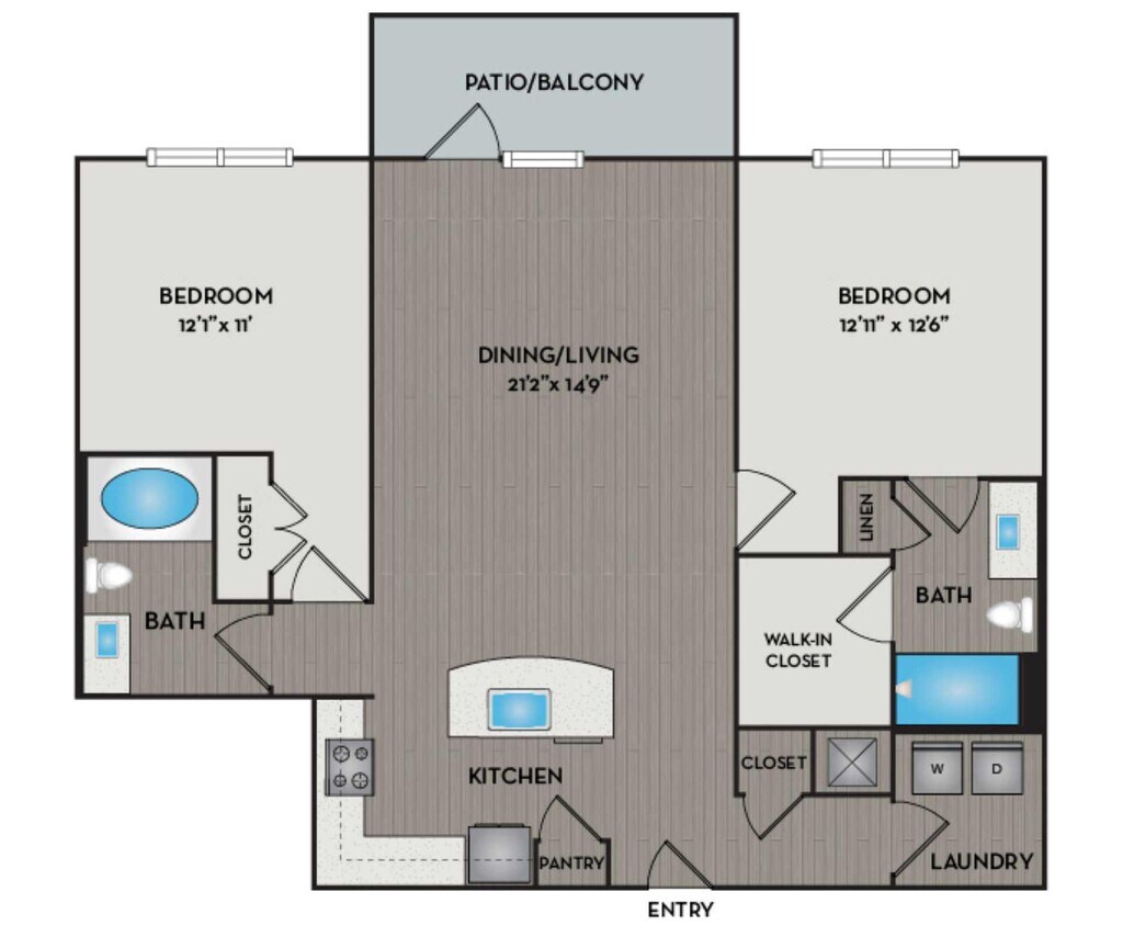 2 Dormitorios, 2 Baños, 1158-1177 pies²Galería del Modelo