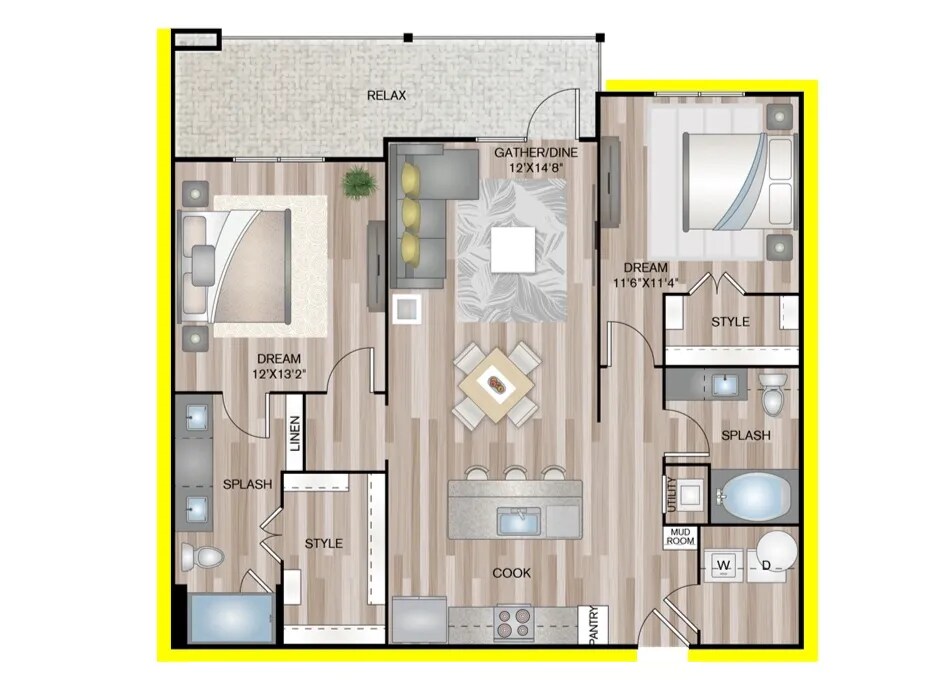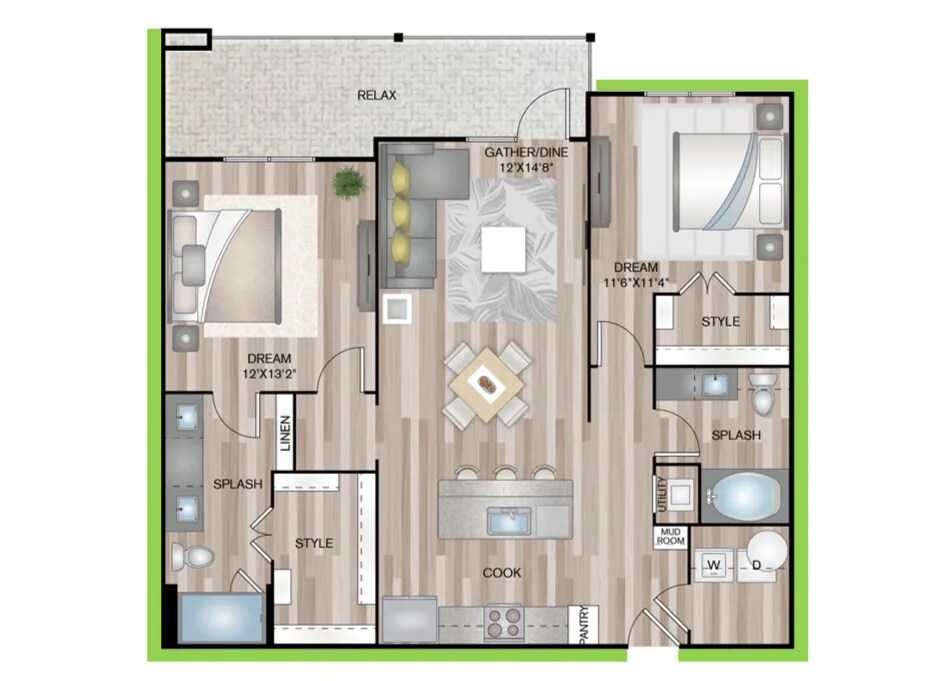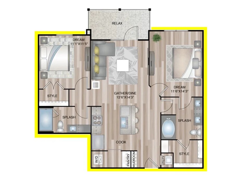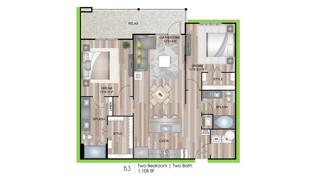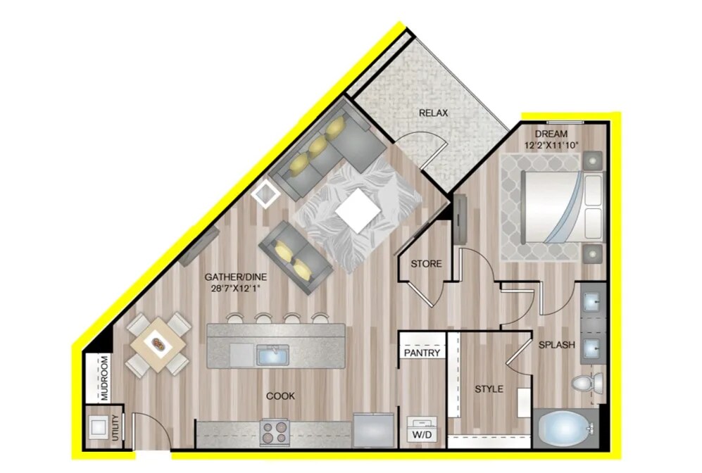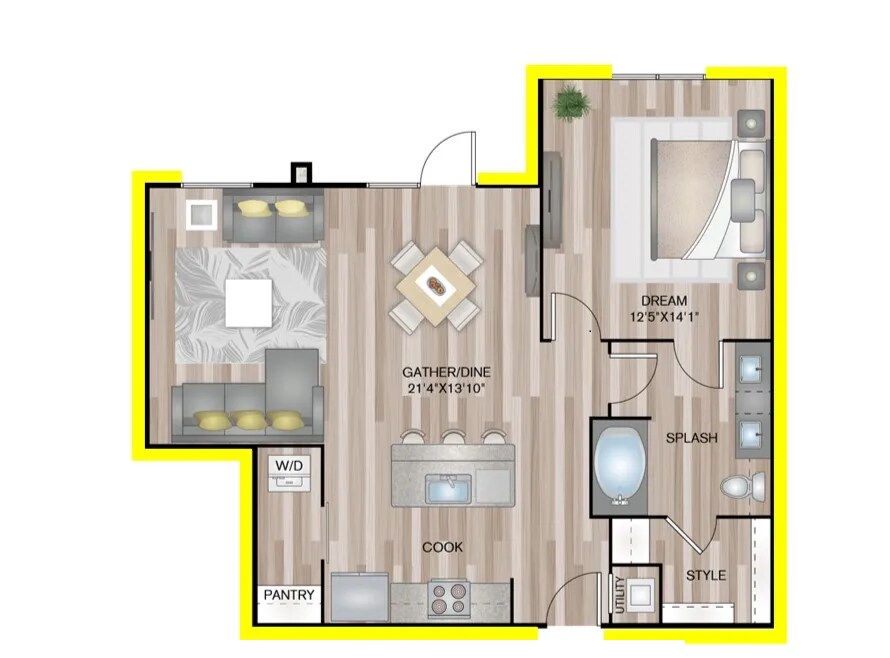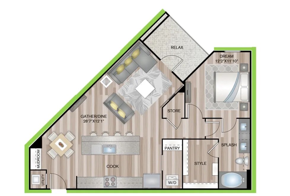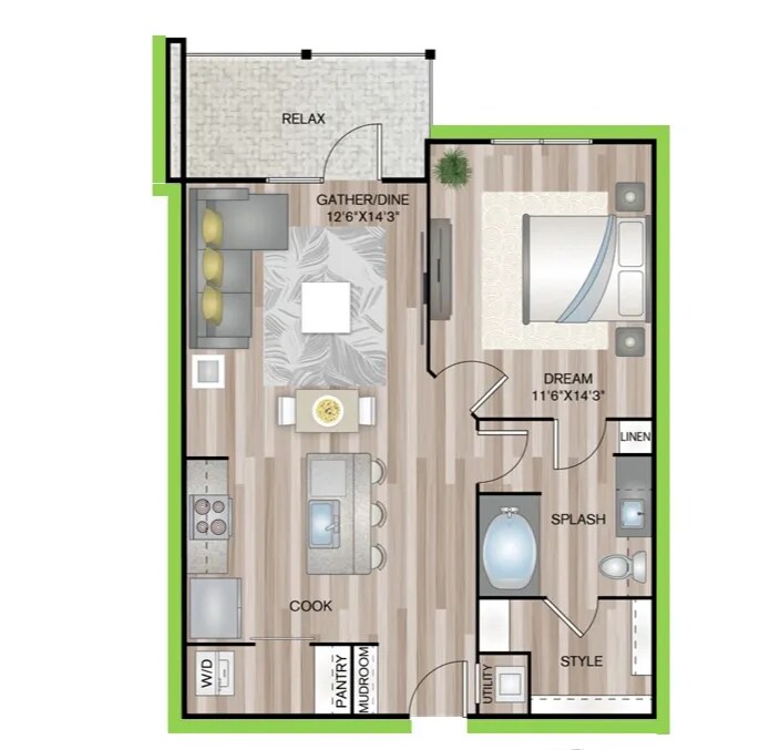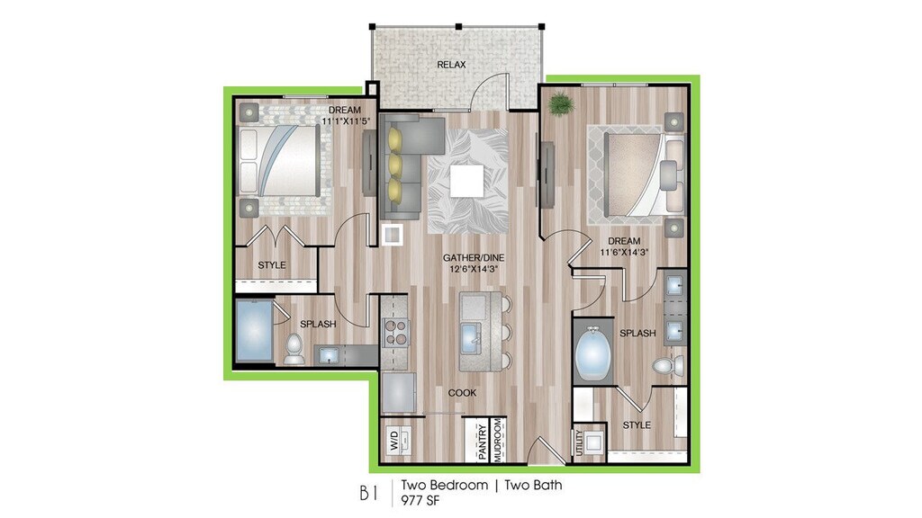 1 Dormitorio, 1 Baño, 691 pies²Disponible AhoraGalería del Modelo