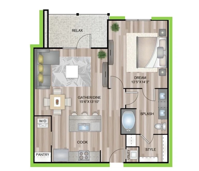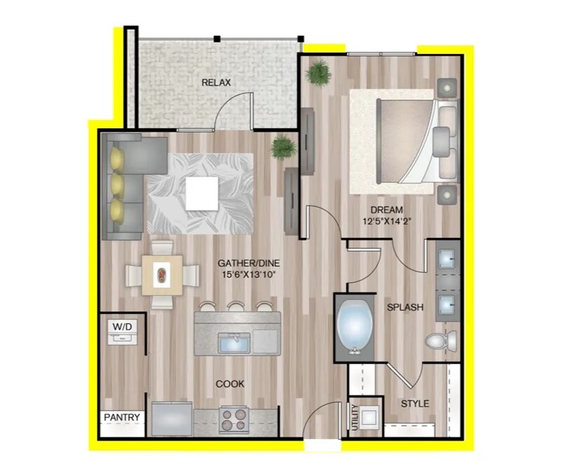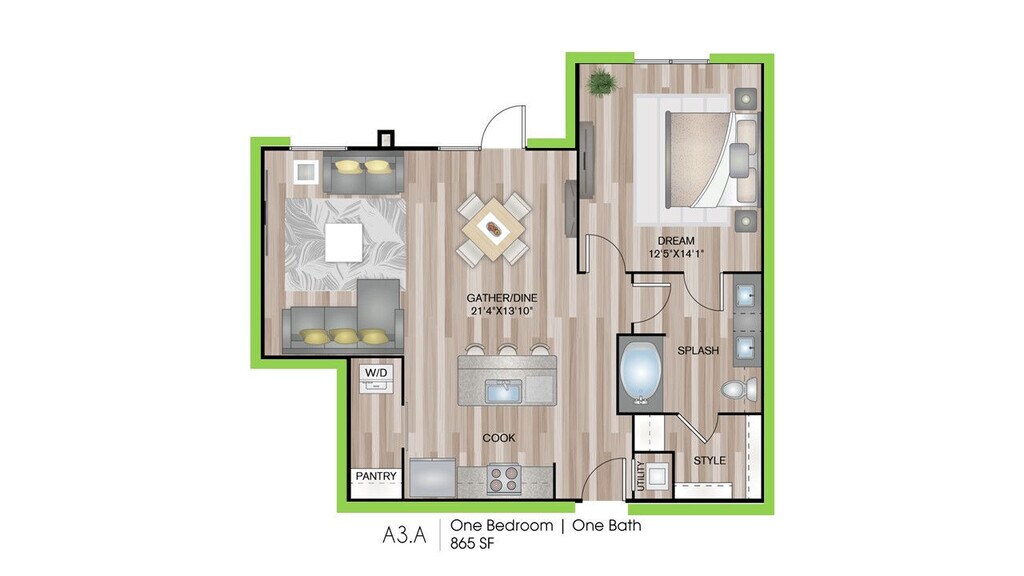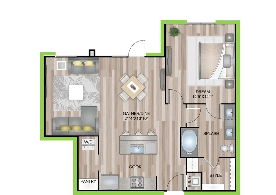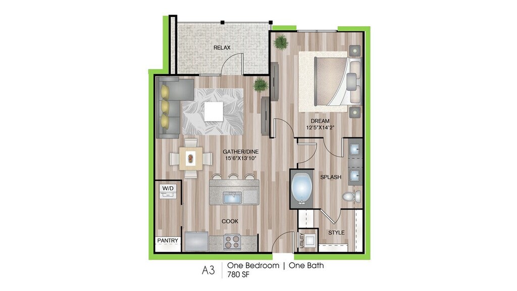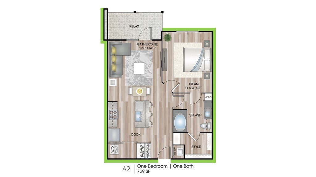 1 Dormitorio, 1 Baño, 729 pies²Disponible AhoraGalería del Modelo