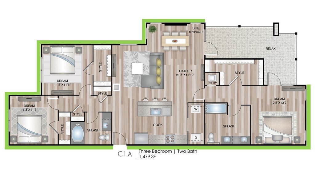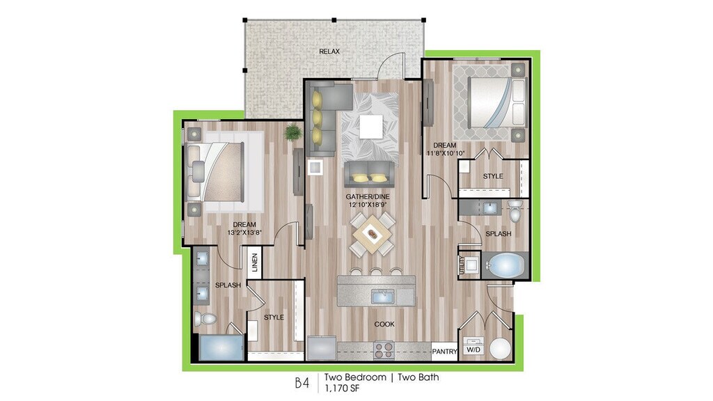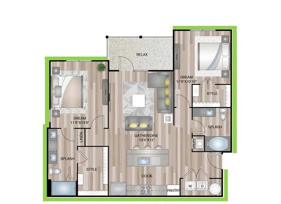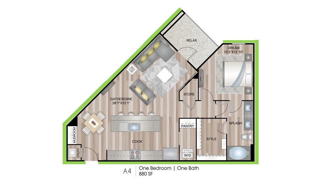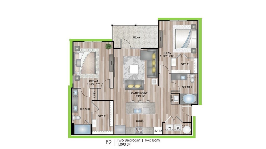 1 Dormitorio, 1 Baño, 729 pies²Disponible AhoraGalería del Modelo