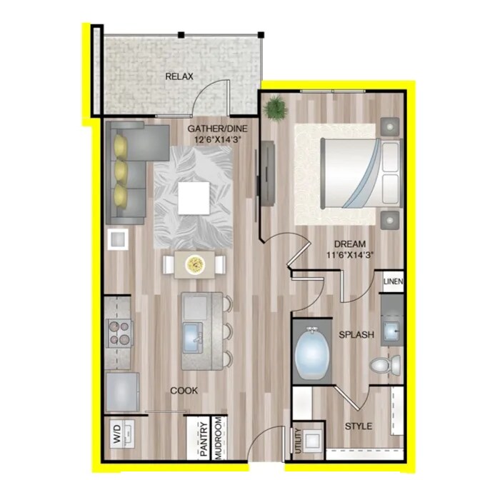 Modelo de apartamento: A1P6Desde $1,2131 Dormitorio, 1 Baño, 691 sq ftDisponible AhoraLos planos de la planta son una interpretación artística. Todas las dimensiones son aproximadas. Los tamaños o el detalle del producto real y sus especificaciones pueden variar. No todas las características están disponibles en todos los hogares para rentar. Los precios y la disponibilidad están sujetos a cambios. El alquiler que se muestra es mensual. Se pueden aplicar ciertos cargos, por ejemplo, entrega de paquetes, recolección de basura, agua, servicios, etc. Depositos varian. Consulta a un representante para conocer detalles.