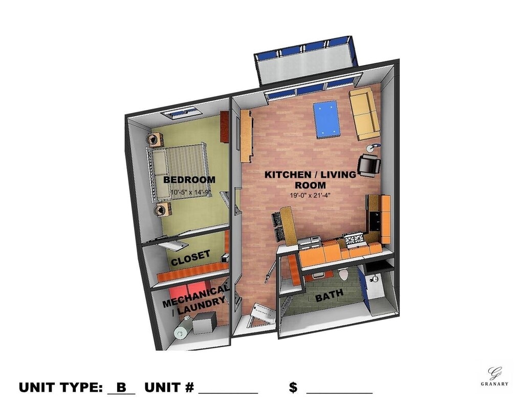 Granary Lofts se encuentra en el Barrio Walkers Point y el código postal 53204 de Milwaukee, WI. Esta comunidad está gestionada profesionalmente por LCM Funds Real Estate, LLC