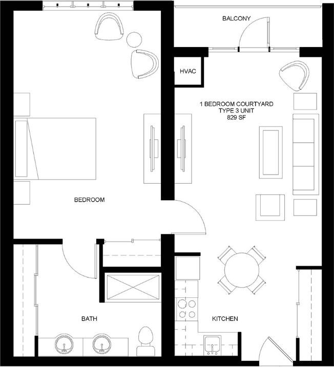 Fecha Disponibilidad Unidad Pies² No Disponible Studio Courtyard - Type 2 346 pies² Características y Comodidades de Modelo