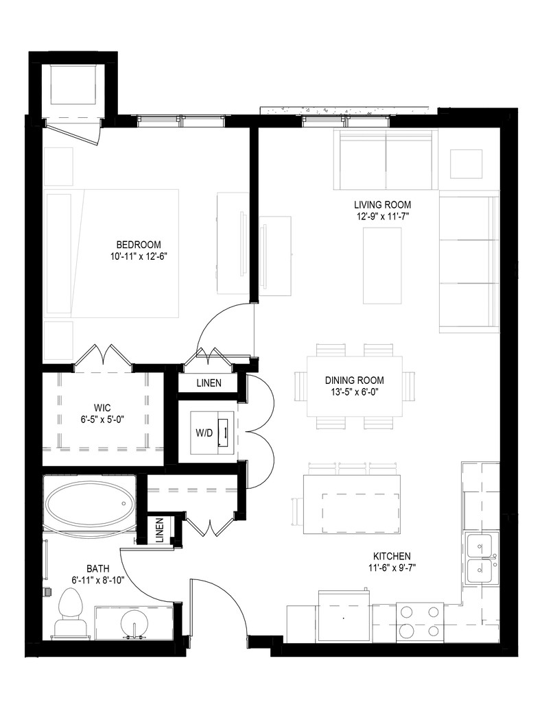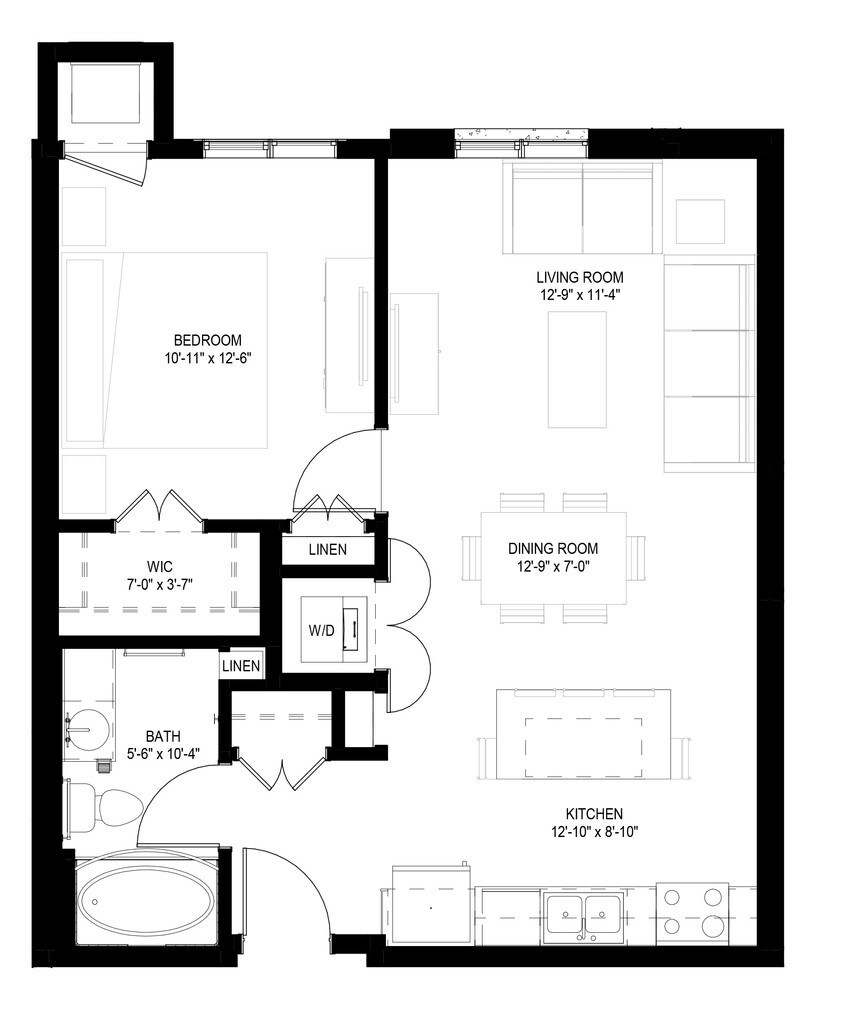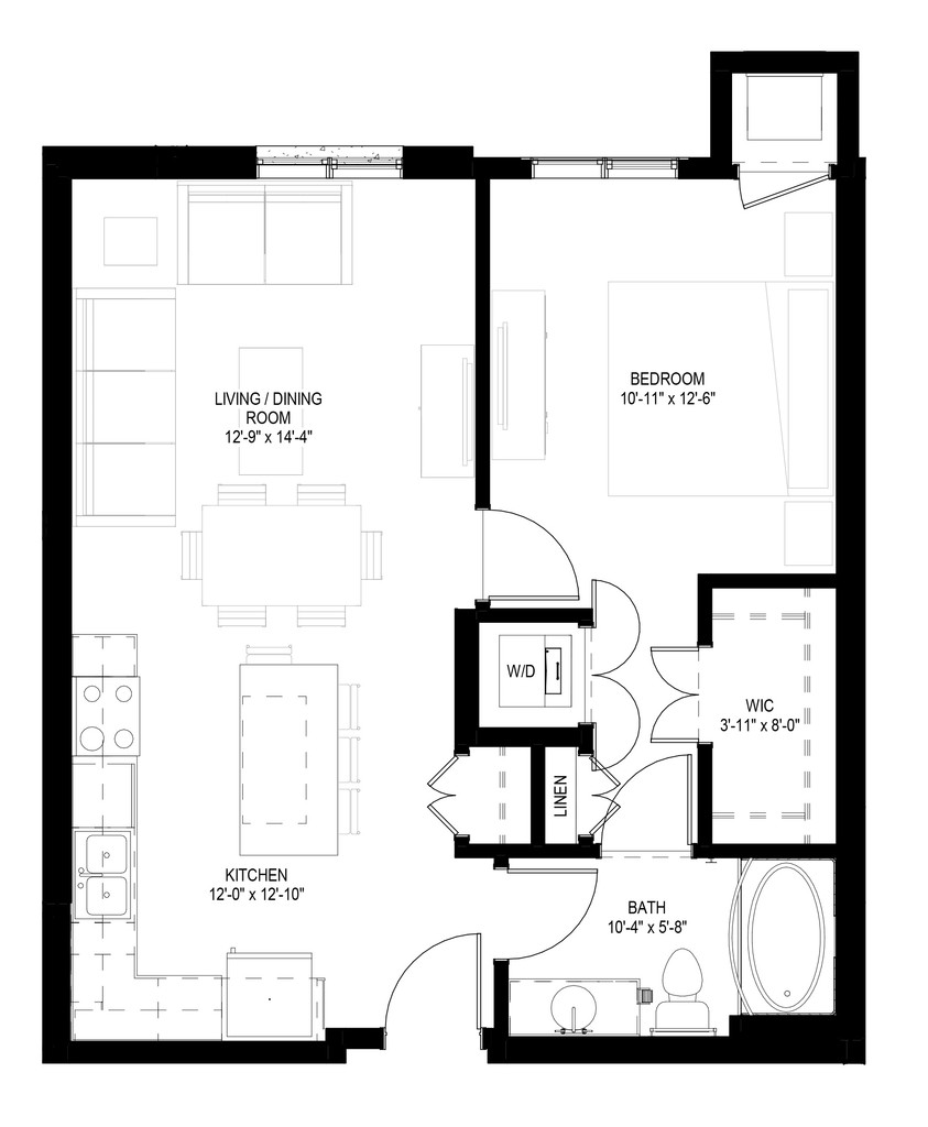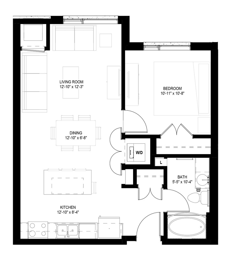 1 Dormitorio, 1 Baño, 723 pies²Más CargosDisponible Nov 1Galería del Modelo