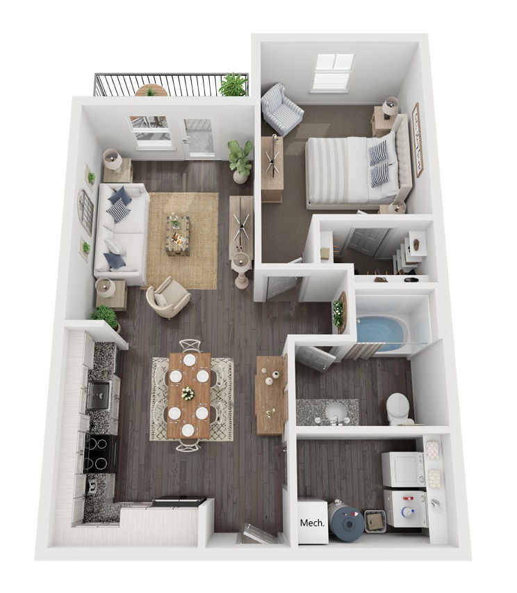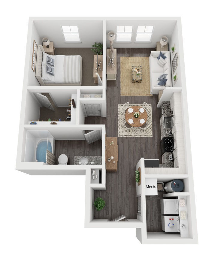 1 Dormitorio, 1 Baño, 707 pies²Disponible AhoraGalería del Modelo