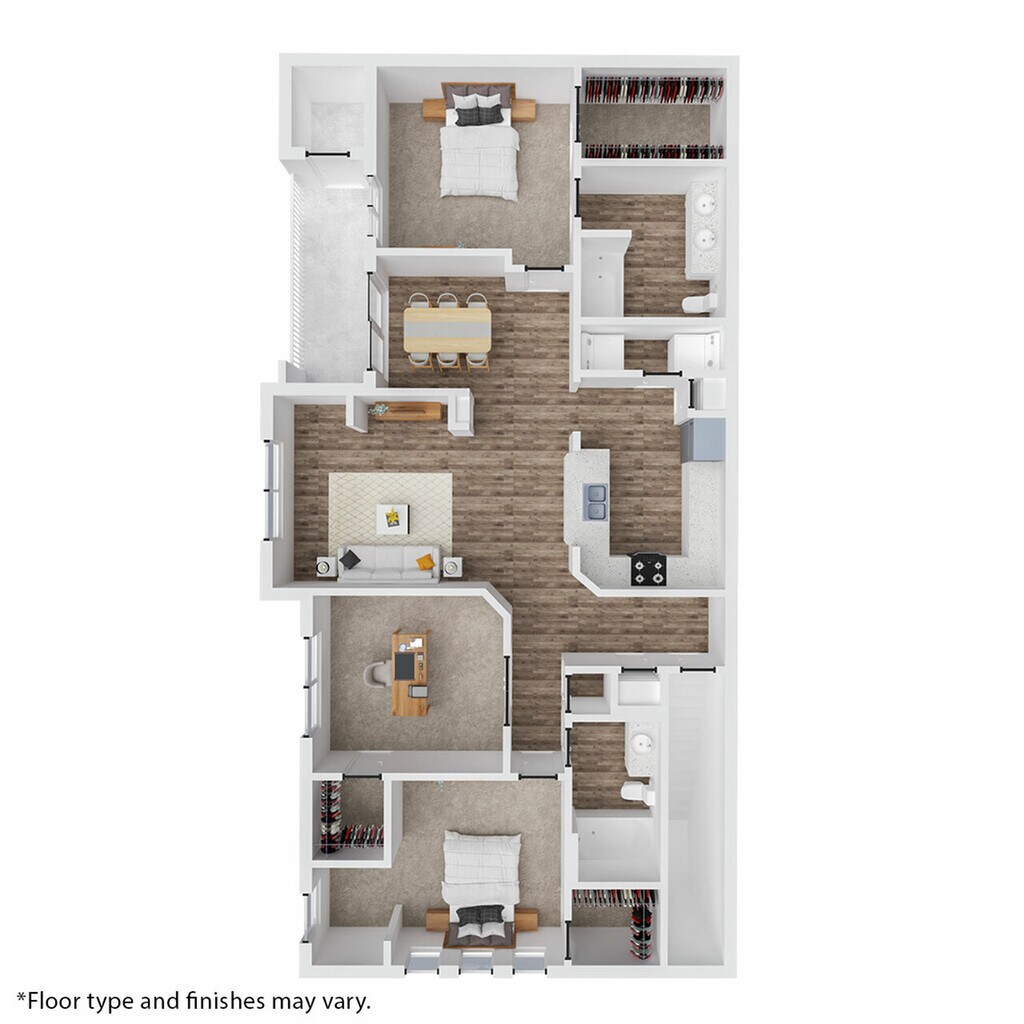 2 Beds, 2 Baths, 1051-1122 sq ftAvailable NowCheapest 2 BedroomThis is the cheapest 2 Bedroom at this PropertyModel Gallery