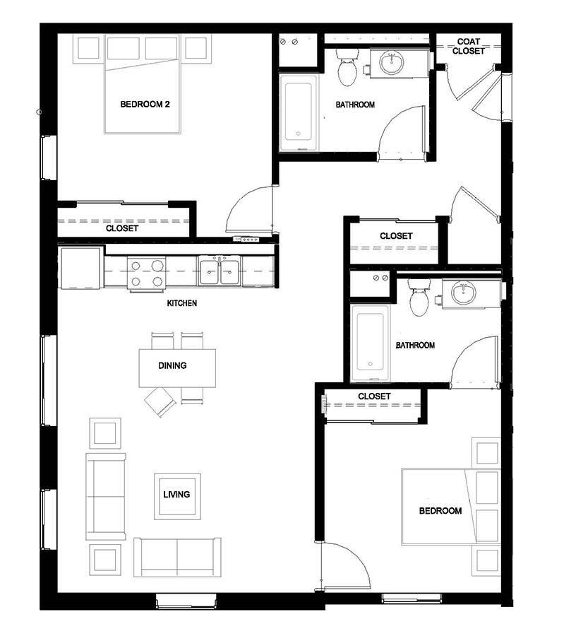 2 Dormitorios, 2 Baños, 875-1122 pies²Galería del Modelo