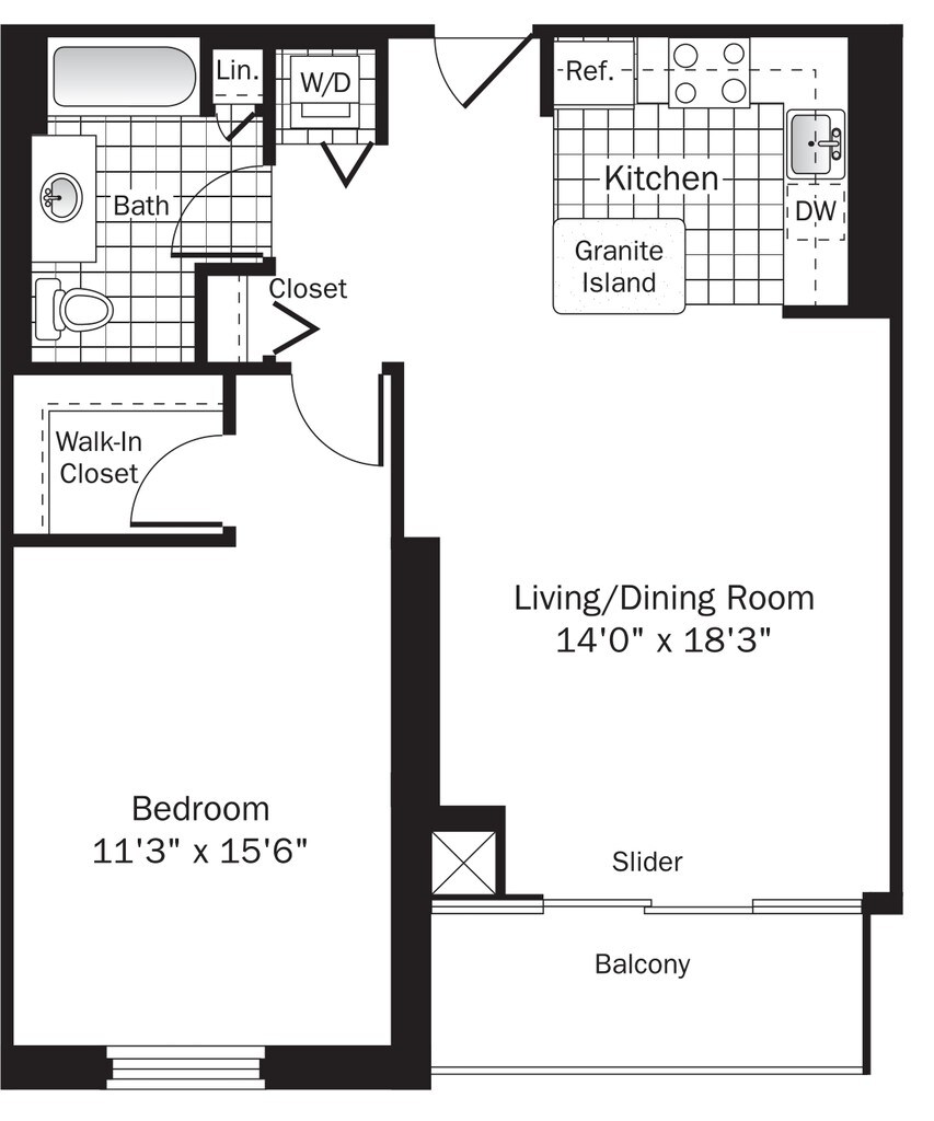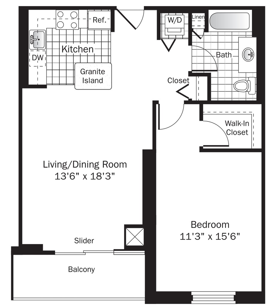 UNIT 4 (1BR/1BA) - Plano 1 One Bedroom - 885 Sqft.