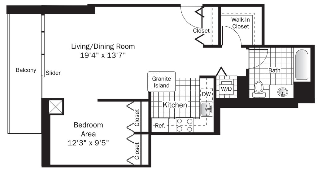 Estudio, 1 Baño, 690 pies²Disponible AhoraGalería del Modelo