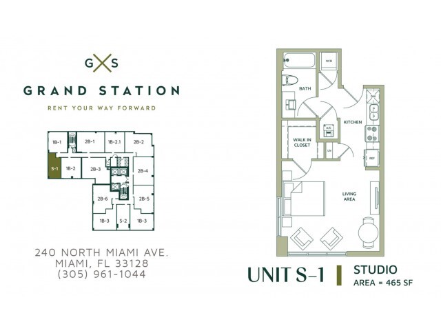 Studio (S-1) - Plano 1 Unidad de apartamento: 1701Modelo de apartamento: Studio (S-1)Desde $2,275Estudio, 1 Baño, 465 sq ftDisponible Ahora![]()