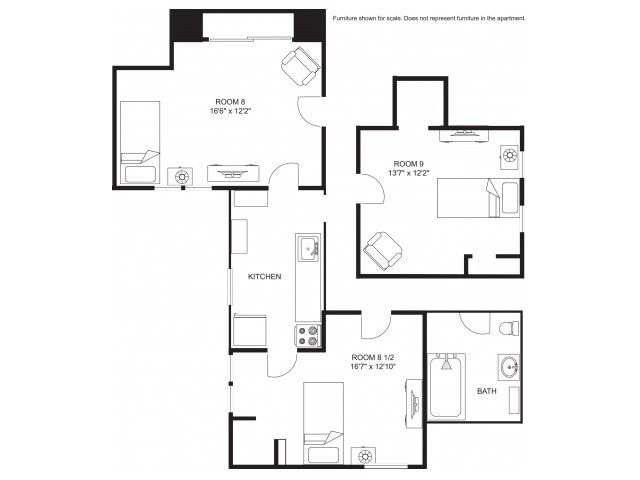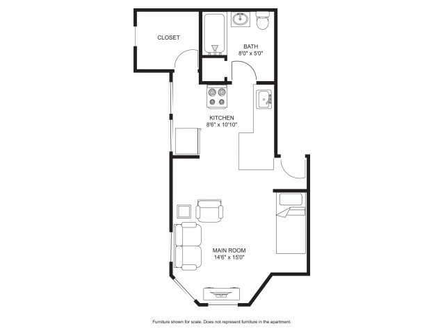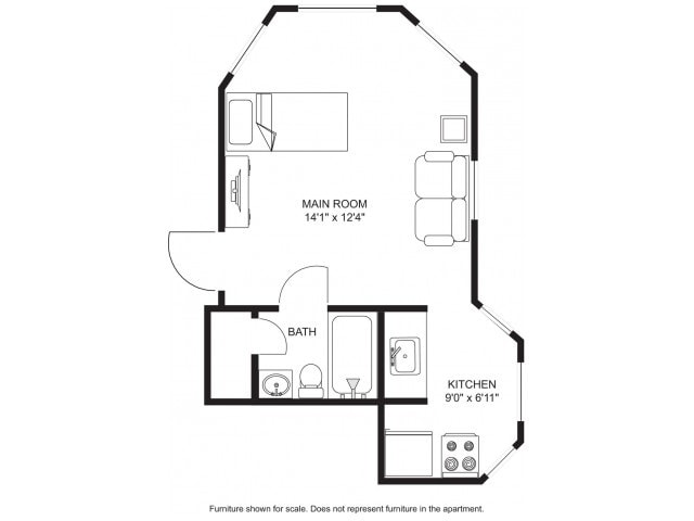 Modelo de apartamento: Room with Shared BathroomEstudio, 1 Baño, 200 sq ftNo Disponible![]()