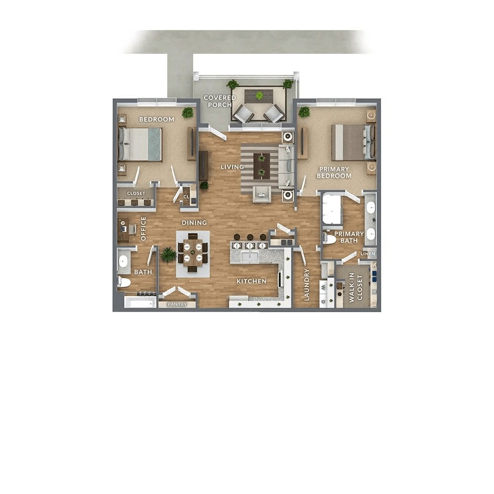 Modelo de apartamento: CaptivaLlame para Precios2 Dormitorios, 2 Baños, 1309 sq ftNo Disponible![]()