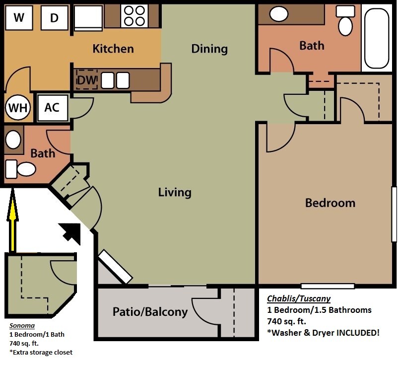 Sonoma - Plano 1 Unidad de apartamento: 0503Modelo de apartamento: Sonoma$1,2601 Dormitorio, 1 Baño, 740 sq ftDisponible December 19, 2025Chablis