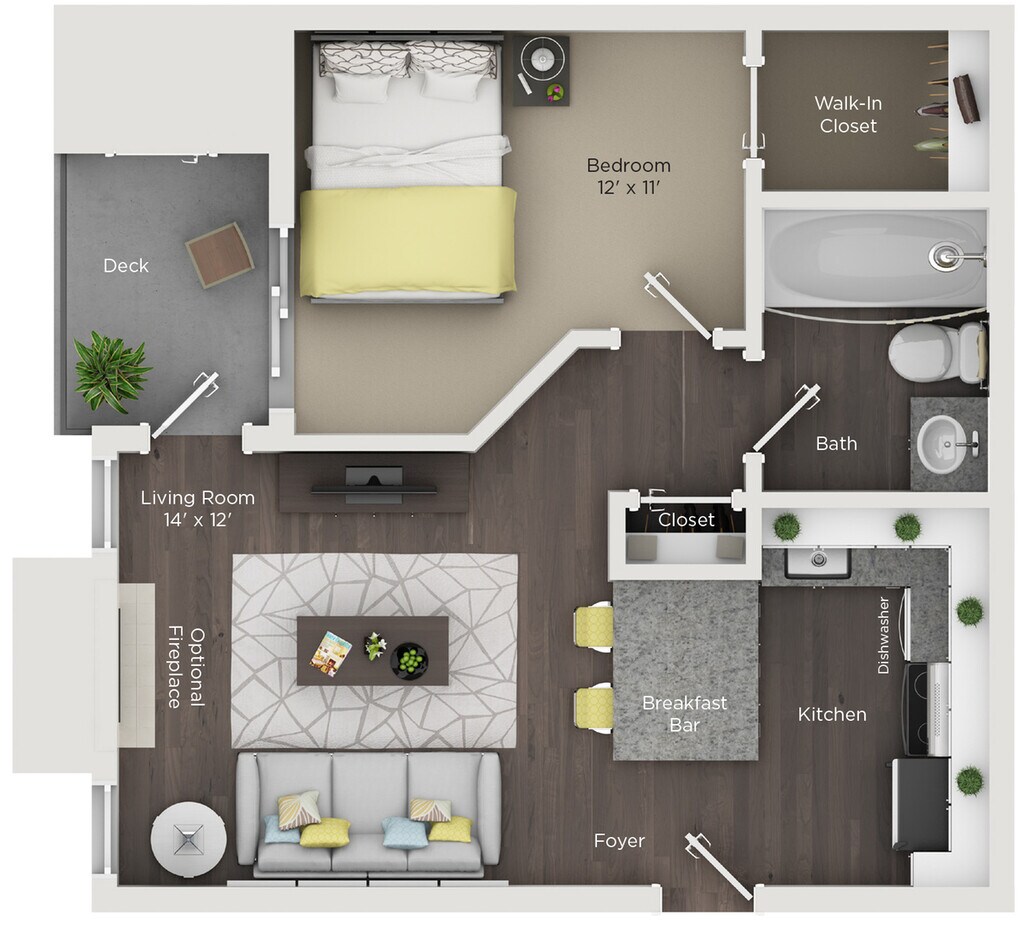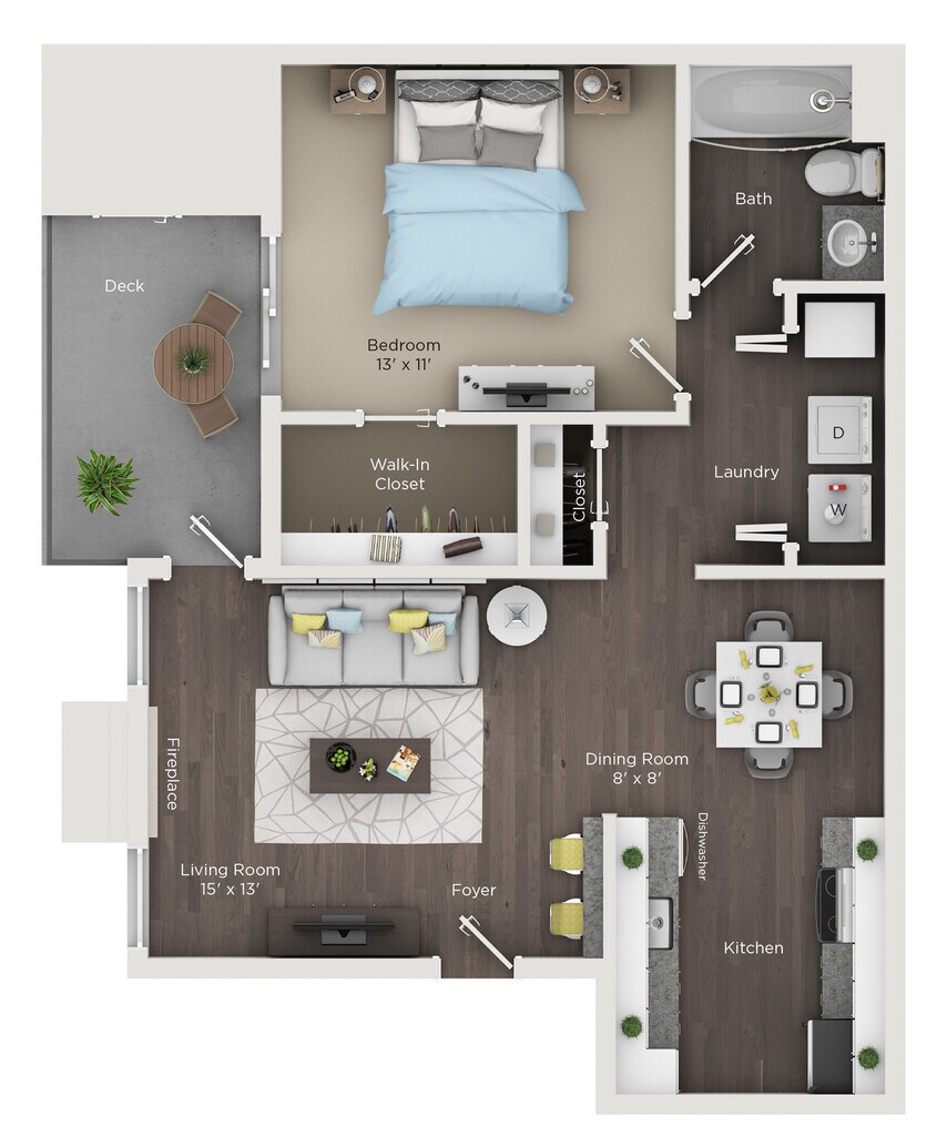 1 Dormitorio, 1 Baño, 598 pies²Disponible AhoraGalería del Modelo