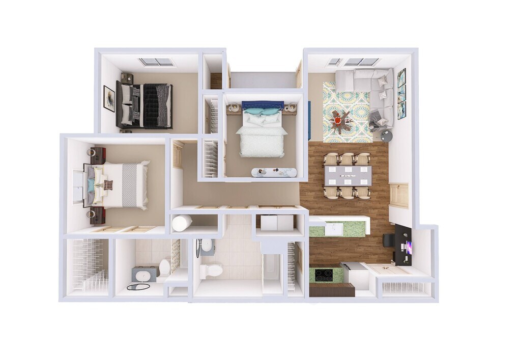 Modelo de apartamento: Kirby$1,6001 Dormitorio, 1 Baño, 787 sq ftDisponible Ahora![]()