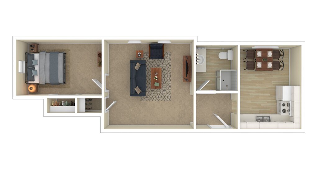 1 Dormitorio, 1 Baño, 900 pies²El más grandeEsta opción tiene las unidades más grandes para este modeloGalería del Modelo