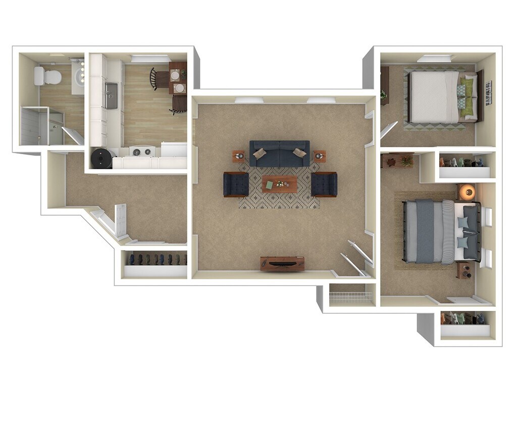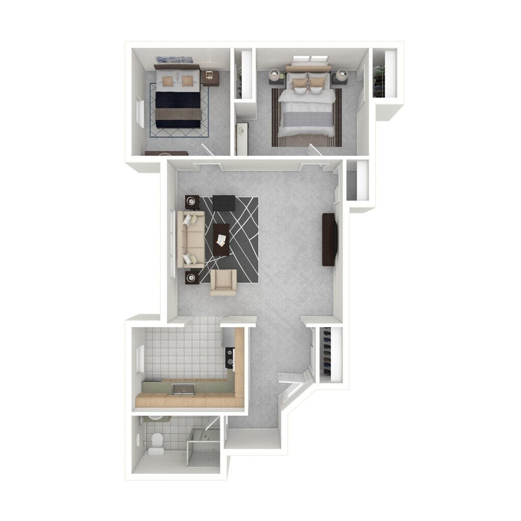 Modelo de apartamento: 2 Bed 1 Bath_9502 Dormitorios, 1 Baño, 950 sq ftNo Disponible![]()