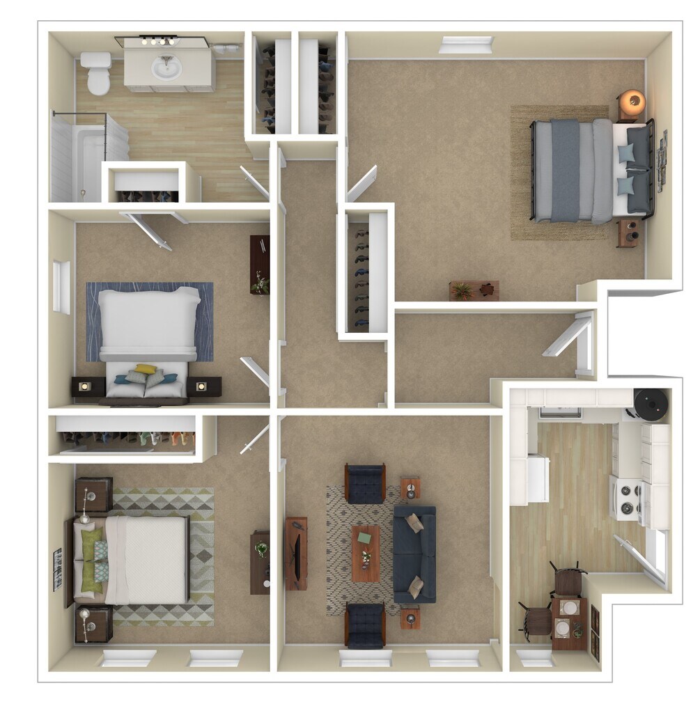 Modelo de apartamento: 3 Bed 1 Bath3 Dormitorios, 1 Baño, 950 sq ftNo Disponible![]()