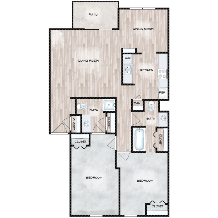 Modelo de apartamento: 2 Bedroom2 Dormitorios, 2 Baños, 1150 sq ftDisponible Ahora![]()