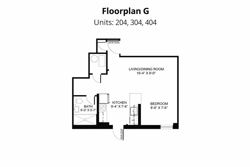 G - Plano 1 Unidad de apartamento: 404Modelo de apartamento: G$725Estudio, 1 Baño, 410 sq ftDisponible March 1, 2026![]()