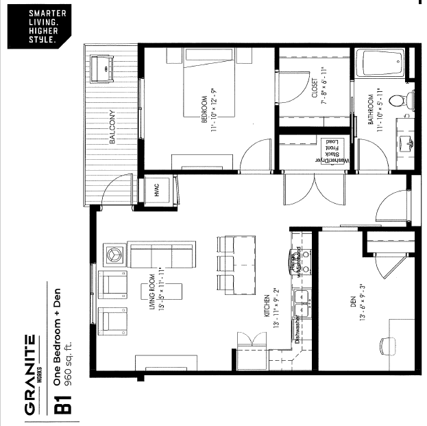 Modelo de apartamento: 1 Bedroom plus Den$1,8751 Dormitorio, 1 Baño, 960 sq ftDisponible Ahora![]()