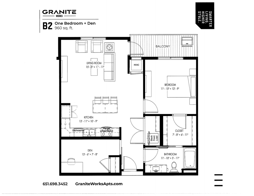 1 Bedroom plus Den - Plano 2 ![]()