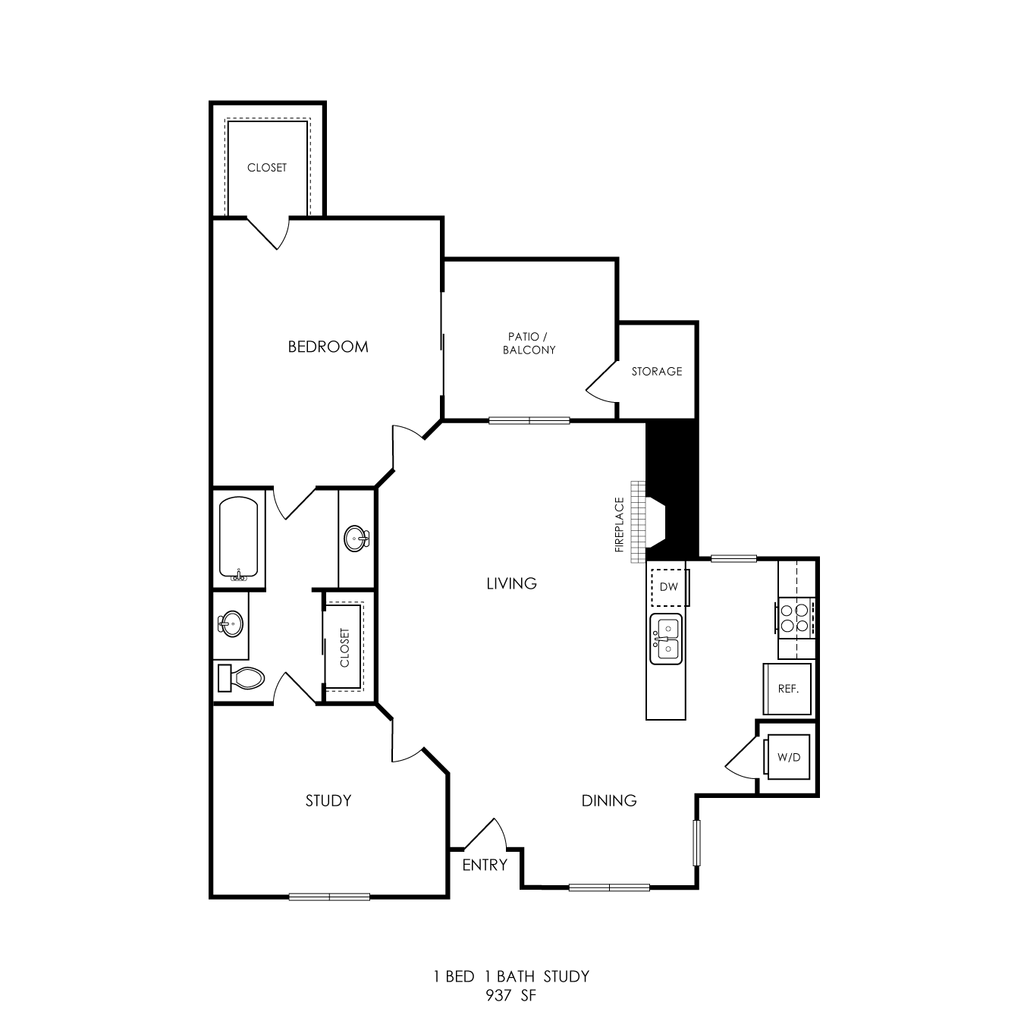 1 Dormitorio, 1 Baño, 619 pies²Disponible AhoraGalería del Modelo