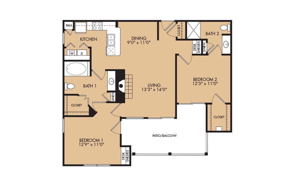 1 Dormitorio, 1 Baño, 859 pies²Disponible AhoraGalería del Modelo
