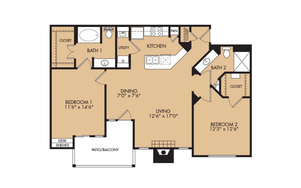 1 Dormitorio, 1 Baño, 769 pies²Disponible January 4, 2026Galería del Modelo