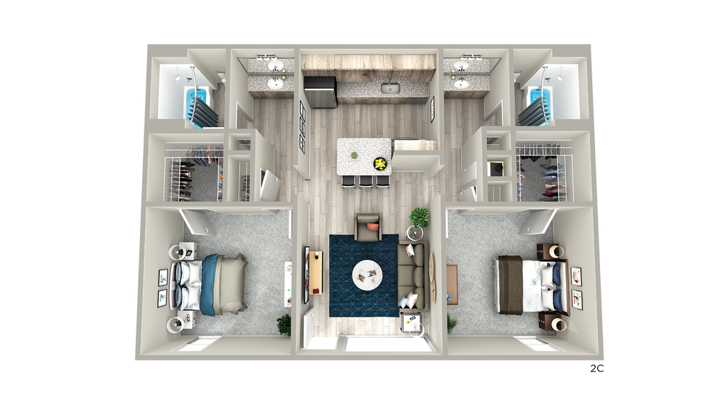 Modelo de apartamento: 2A$1,1802 Dormitorios, 1 Baño, 900 sq ftDisponible Ahora2A - Plano 1 2A - Plano 2 Plano: 2C