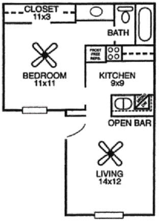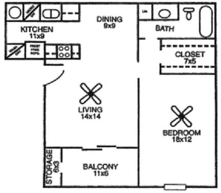Modelo de apartamento: Small 1B - 465 sfDesde $7651 Dormitorio, 1 Baño, 465 sq ftDisponible Ahora![]()