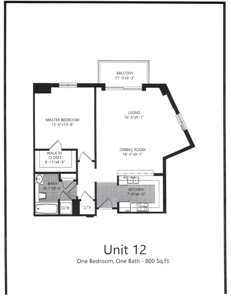 1 Dormitorio, 1 Baño, 800 pies²Disponible Oct 20Galería del Modelo