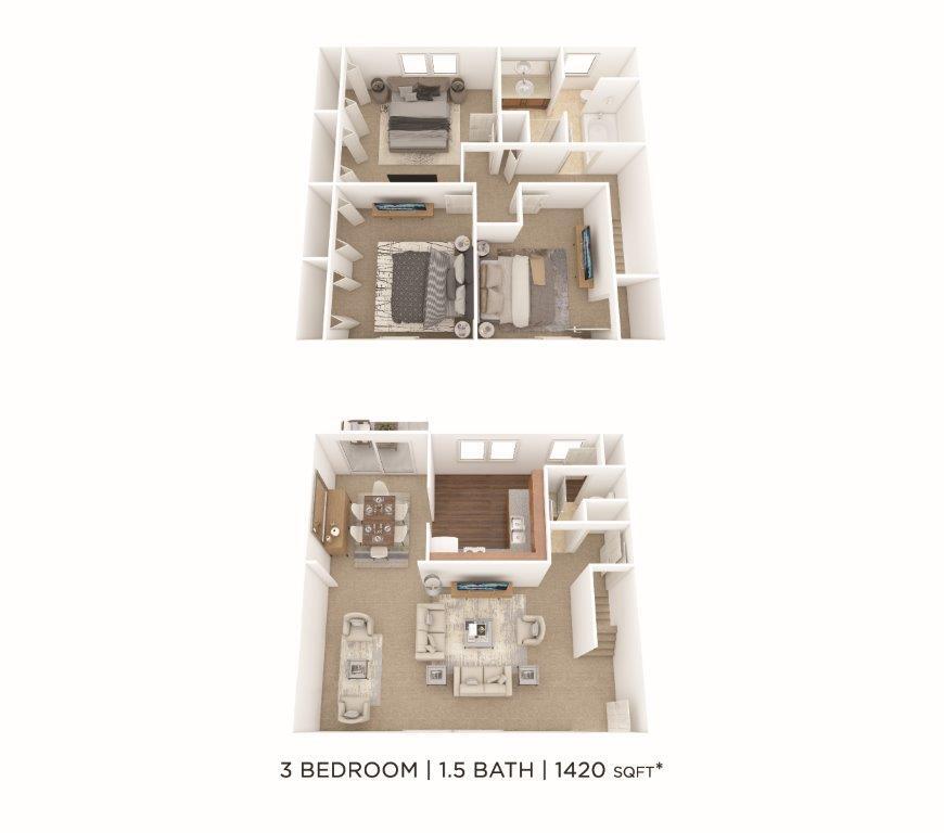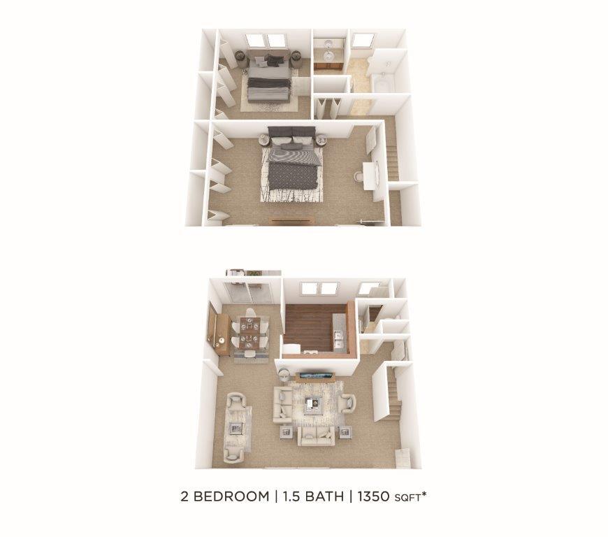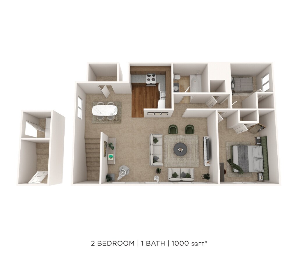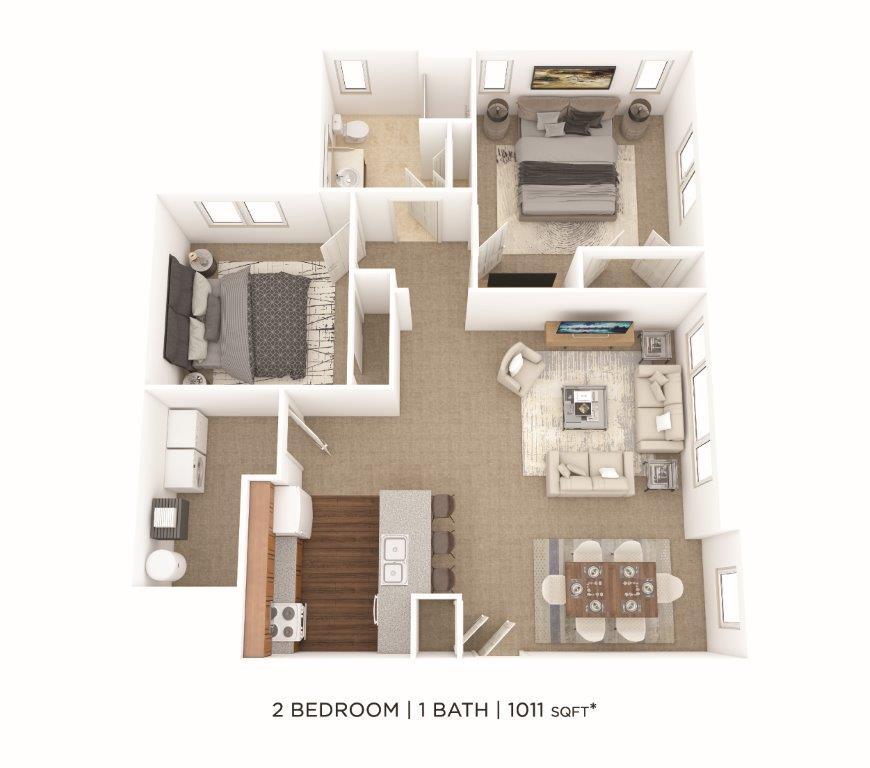 2 Dormitorios, 1 Baño, 1200 pies²Disponible AhoraGalería del Modelo