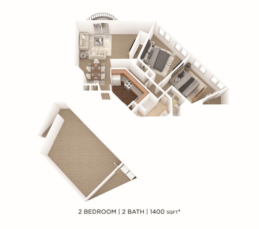 Two Bedroom - 1,200 sqft - Plano 2 Unidad de apartamento: 50-5Modelo de apartamento: Two Bedroom - 1,200 sqft$1,6502 Dormitorios, 1 Baño, 1200 sq ftDisponible AhoraTwo Bedroom 2 Bath- 1,129 sqft