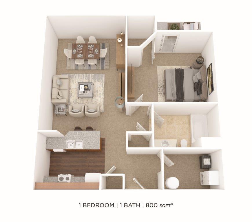 Modelo de apartamento: One Bedroom- 800 sqftLlame para Precios1 Dormitorio, 1 Baño, 800 sq ftNo Disponible![]()