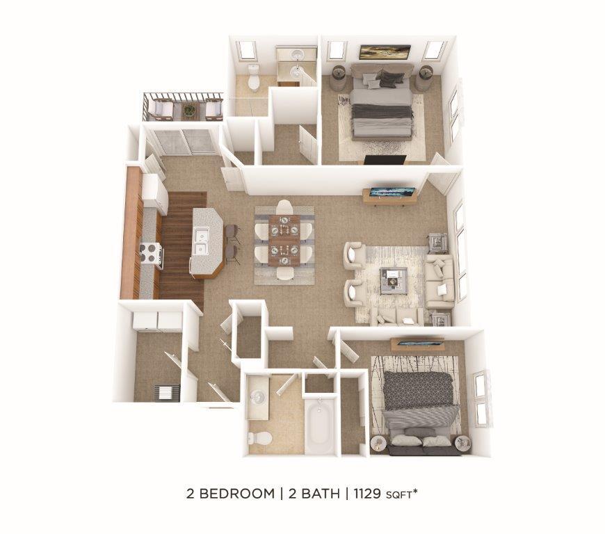 Modelo de apartamento: Two Bedroom 2 Bath- 1,100 sqftDesde $1,6452 Dormitorios, 2 Baños, 1100 sq ftDisponible Ahora![]()