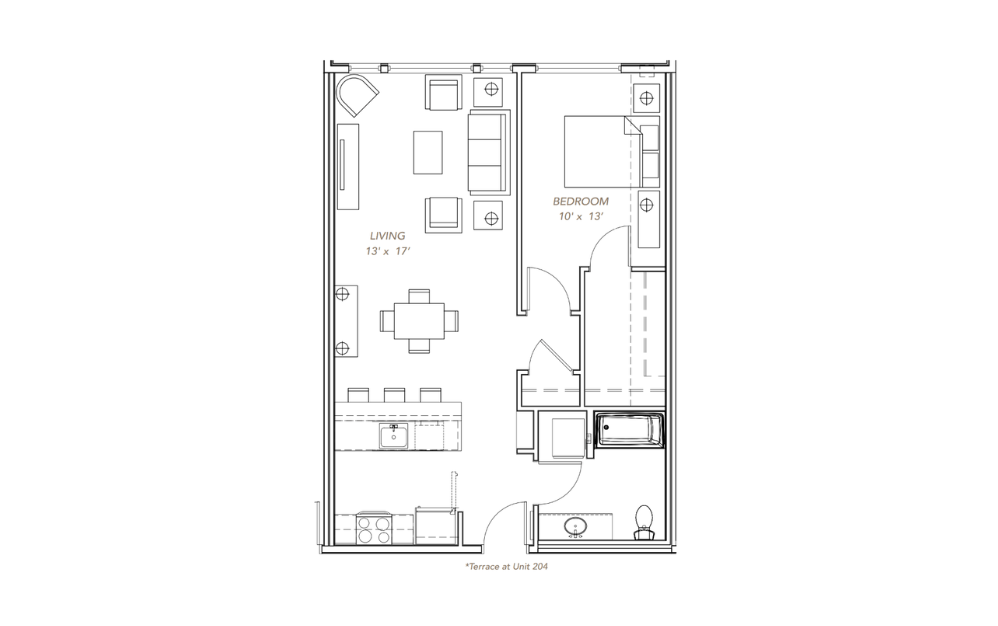 1 Dormitorio, 1 Baño, 570-580 pies²Disponible AhoraGalería del Modelo
