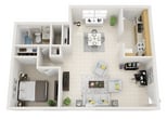 1 Dormitorio, 1 Baño, 890 pies²Disponible AhoraGalería del Modelo