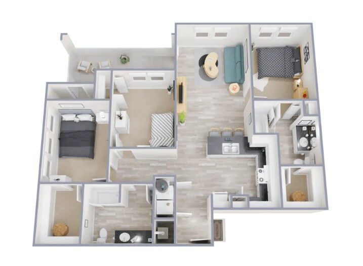 Modelo de apartamento: 3 Bedroom 2 BathDesde $1,4743 Dormitorios, 2 Baños, 1070 sq ftDisponible Ahora![]()