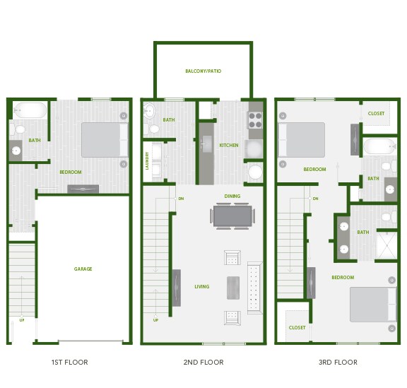 1 Dormitorio, 1 Baño, 850 pies²Disponible AhoraGalería del Modelo