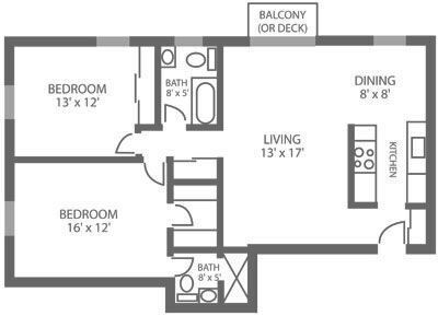Modelo de apartamento: 2 Bed | 1.5 BathLlame para Precios2 Dormitorios, 1.5 Baños, 860 sq ftNo Disponible2 Bed | 1.5 Bath - Plano 1 3 Dormitorios