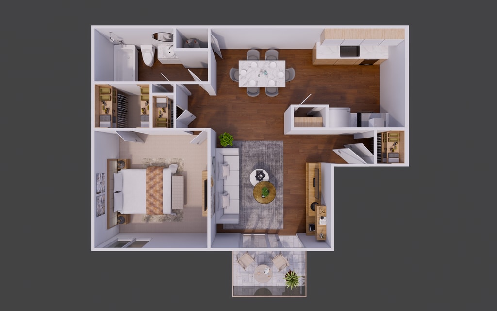 Modelo de apartamento: A1Desde $9201 Dormitorio, 1 Baño, 720 sq ftDisponible April 17, 2026![]()