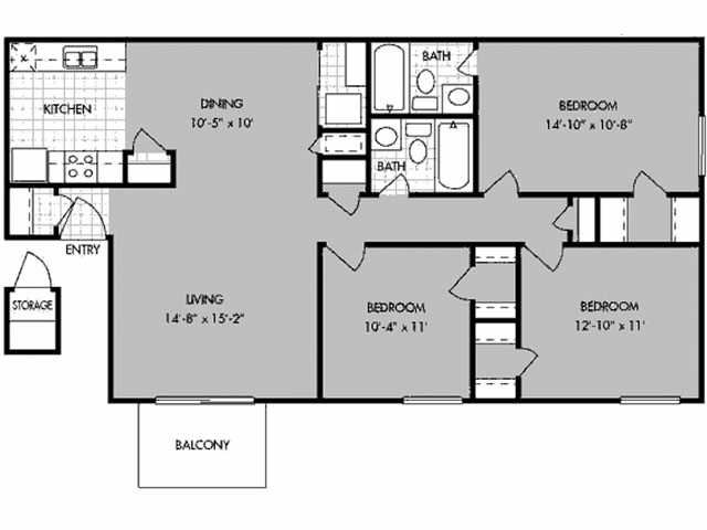 Modelo de apartamento: B3 op2$1,2632 Dormitorios, 1.5 Baños, 975 sq ftDisponible Ahora![]()