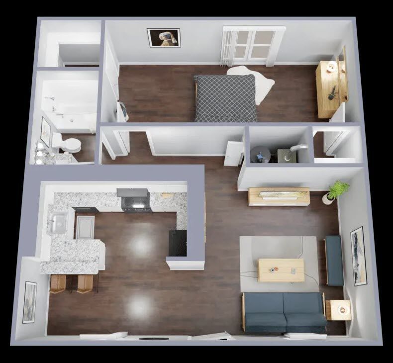 1 Dormitorio, 1 Baño, 726 pies²Disponible Apr 2Galería del Modelo
