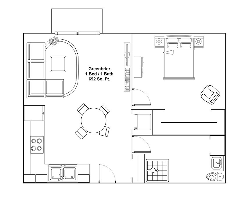 Modelo de apartamento: One Bedroom$9991 Dormitorio, 1 Baño, 692 sq ftNo Disponible![]()