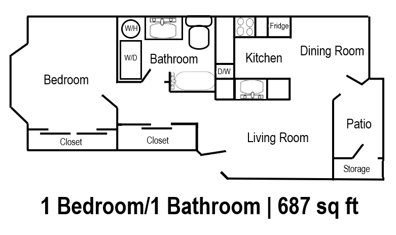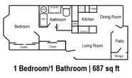 1 Dormitorio, 1 Baño, 687 pies²Disponible AhoraGalería del Modelo