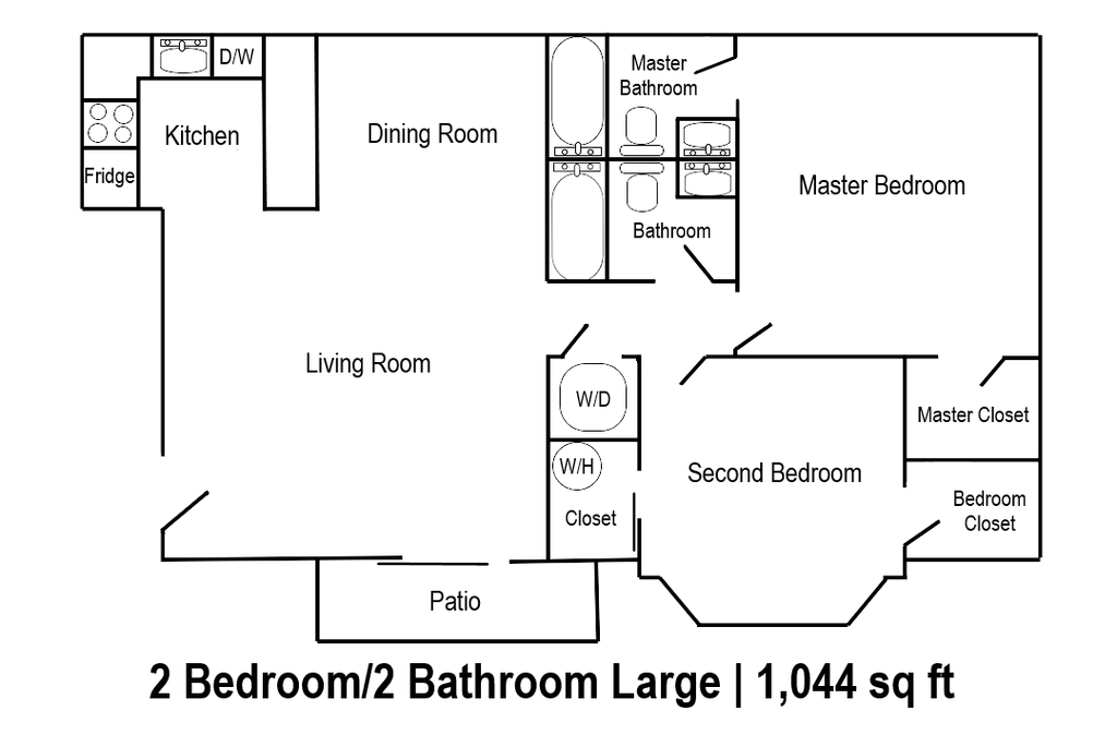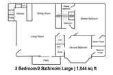 Modelo de apartamento: Two Bedroom Large$1,7892 Dormitorios, 2 Baños, 1044 sq ftDisponible AhoraTwo Bedroom Large - Plano 1 Unidad de apartamento: 12Modelo de apartamento: Two Bedroom Large$1,7892 Dormitorios, 2 Baños, 1044 sq ftDisponible Ahora