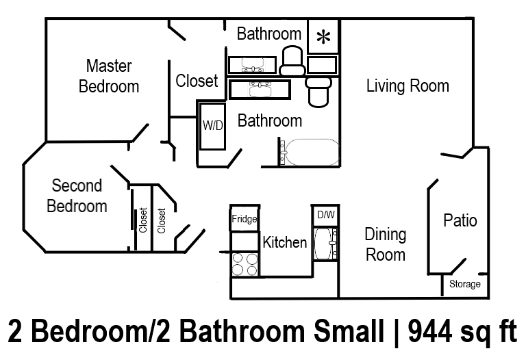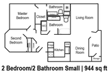 Modelo de apartamento: Two Bedroom Small$1,7592 Dormitorios, 2 Baños, 944 sq ftDisponible AhoraTwo Bedroom Small - Plano 1 Unidad de apartamento: 58Modelo de apartamento: Two Bedroom Small$1,7592 Dormitorios, 2 Baños, 944 sq ftDisponible AhoraTwo Bedroom Large