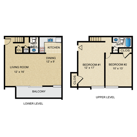 Modelo de apartamento: 2 Bed 1.5 Bath Townhouse$1,4952 Dormitorios, 1.5 Baños, 1200 sq ftDisponible Ahora2 Bed 1.5 Bath Townhouse - Plano 1