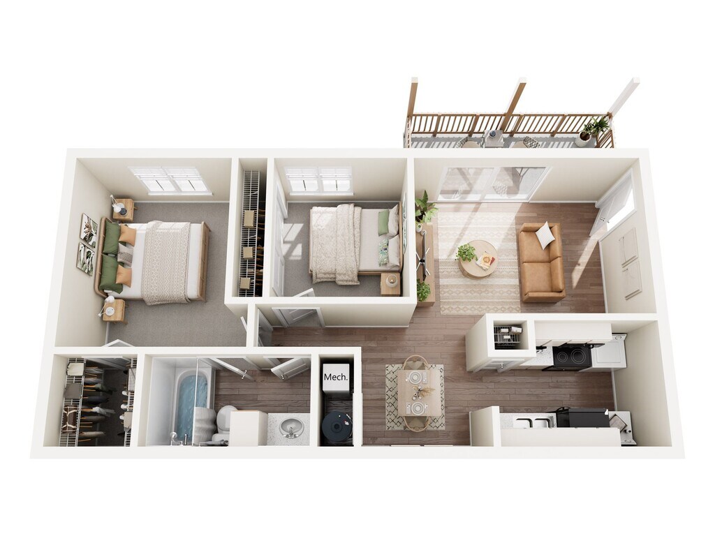 2 Dormitorios, 1 Baño, 937 pies²Disponible AhoraGalería del Modelo